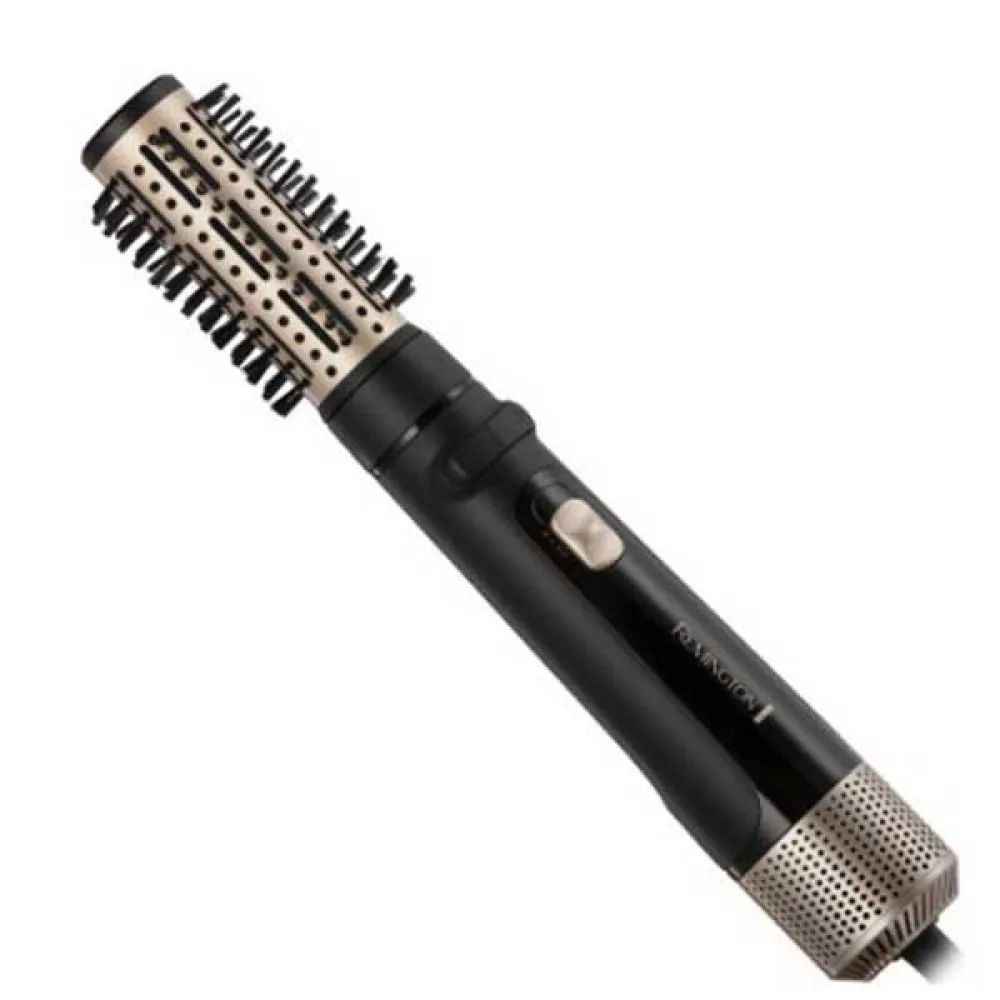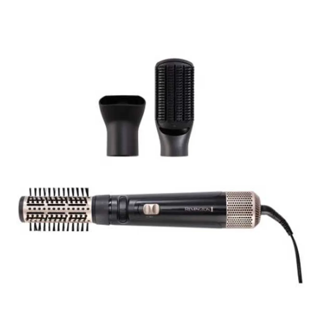 Meet your new one‑step styling essential—the Remington AS7580 Blow Dry & Style rotating hot air styler. Boasting a 1000 W motor, it dries and styles in one go, delivering up to 3× faster results compared to traditional tools. It includes three versatile attachments—a firm paddle brush for sleek finishes, a 40 mm ceramic‑coated round brush with soft bristles for lift and volume, and a concentrator nozzle to prep or refine your style. Enjoy effortless styling thanks to its multi‑directional rotation, enabling smooth, symmetrical styling on both sides of your head. Plus, ionic conditioning tames frizz and boosts shine for a polished, healthy finish.